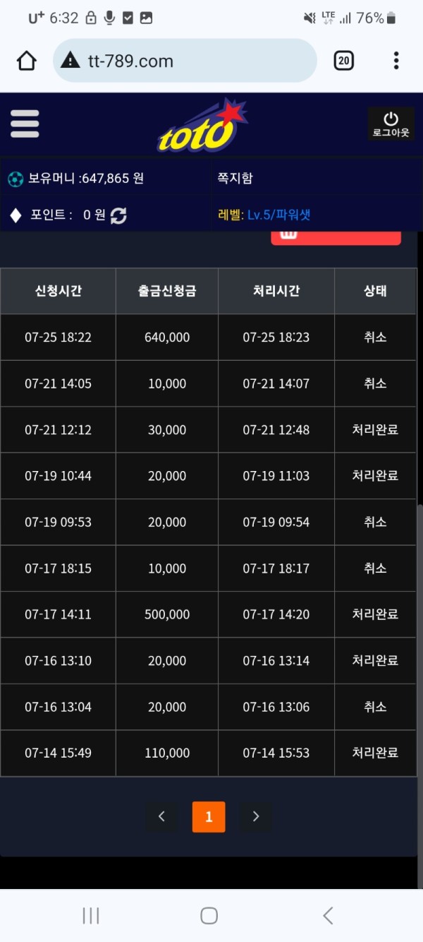 한번도 환못하다가 마지막날 5충해서 슬롯 기적처럼 2000배 터져서 63환전 신청하니 그대로 5만원만 입금주고 먹튀 ㅋㅋㅋㅋ 와진자 개 쓰레기 그지사이트입니다. 박사장이라는 총판 목소리 개늙은이던데 ㅅ발 믿은 제가 잘못이네요 ㅋㅋㅋ